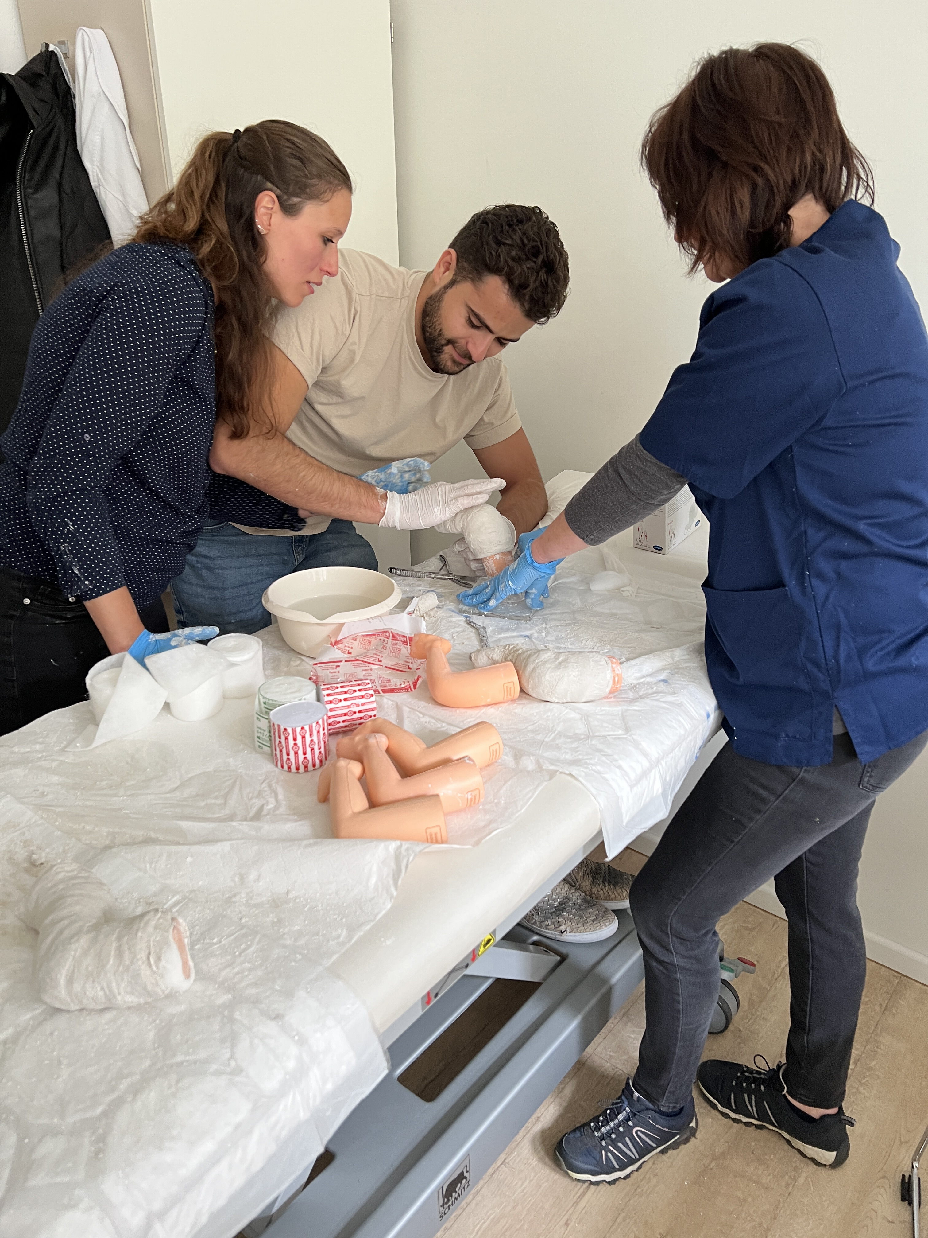 Neben einem abwechslungsreichen Programm mit fundierten Fachvorträgen, die sich thematisch von den oberen Extremitäten über die Wirbelsäule bis hin zum Fuß erstreckten, lag der Fokus auch auf praktischen Anwendungen und Demonstrationen. In Kleingruppen konnten die Teilnehmenden beispielsweise an Klumpfußmodellen die Ponsetigipstechnik erlernen. Darüber hinaus wurden spezielle orthopädische Untersuchungstechniken sowie die Sonografie der Säuglingshüfte direkt an echten kleinen Patientinnen und Patienten geübt.